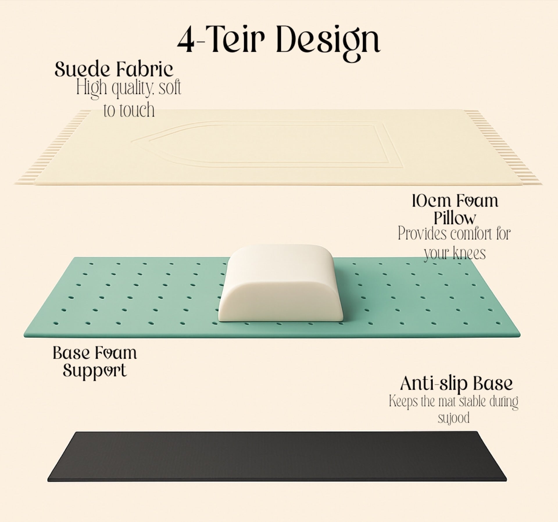 Forms the supportive foundation of the mat, absorbing shock and offering gentle resistance to protect your joints during every movement of prayer.